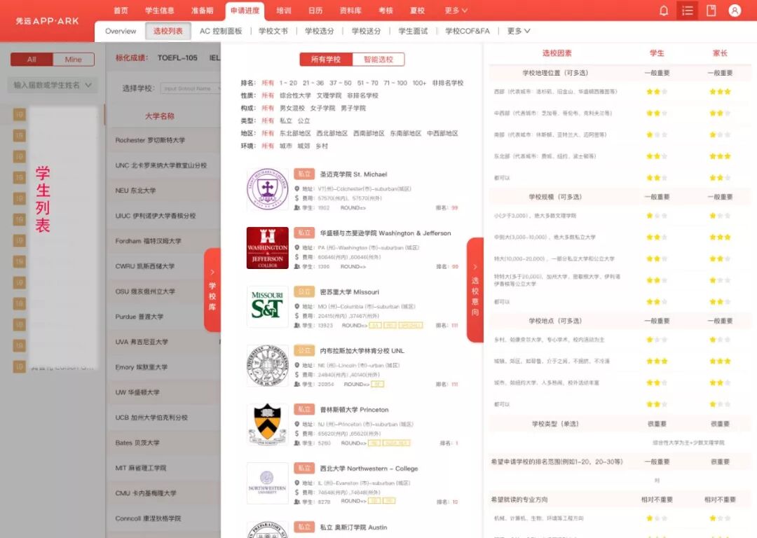 为了能够规避申请中可能出现的人工操作差漏,以做到申请的零失误;也是为了让顾问老师可以把更多的时间和精力放在学生的申请策略上,凭远还自主研发了一个申请系统,包括申请表格填写,学生进度跟踪,重要时间节点提醒等,简直是细致到处女座了。经过两年的内测调试,该申请系统在上一个申请季做到了零出错。