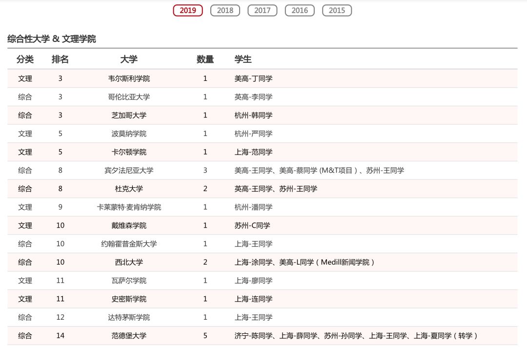 自2009年起,帮助多位学生录取包括普林斯顿大学、芝加哥大学、哥伦比亚大学、宾夕法尼亚大学在内的众多顶尖美国名校。