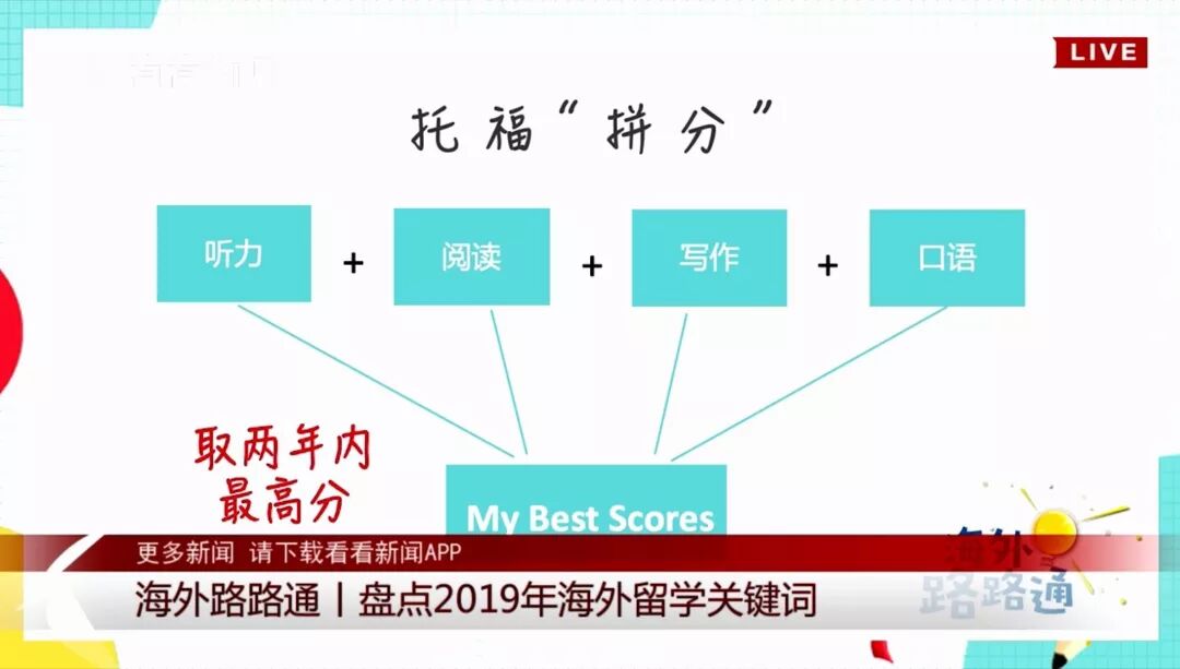此外,托福还推出了“MyBest Score”,自动整合考生过去两年全部有效成绩中,听力、阅读、写作、口语单项的最高分数,从而形成考生的个人最佳成绩。